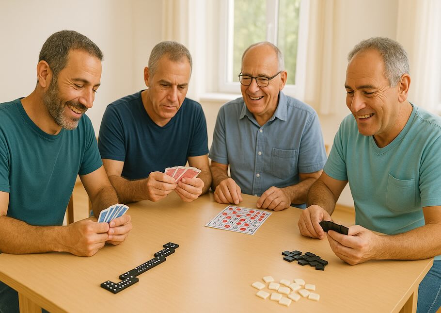 המועדון החברתי לגברים בפנסיה הוא מקום מפגש חם ומזמין, שבו אפשר ליהנות מחברה טובה, שיחות נעימות ותוכן עשיר ומגוון. אחת לשבוע אנחנו נפגשים כדי להקשיב להרצאות מרתקות בנושאים שונים, לקחת חלק בפעילויות העשרה, לשחק במשחקי קופסה מאתגרים ולפגוש חברים חדשים. זוהי הזדמנות נפלאה להעשיר את חיי היום־יום, להישאר פעילים וסקרנים, ובעיקר לבלות זמן איכות באווירה נעימה וחברית.