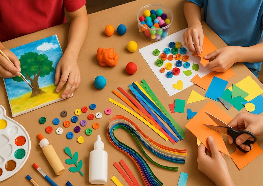 שילוב אמנויות הינו חוג חוויתי שבו תתנסו במגוון רחב של אמנויות : ציור על קנבס, פיסול בפלסטלינה , קווילינג , גזירה , הדבקה, קישוטים ועוד מגוון רחב של אפשרויות הקיימות ביצירה.